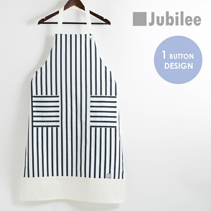 ジュビリー Jubilee メンズエプロン ストライプ コットン ホワイト × ネイビー シングルボタン 男性用 ユニセックス ロング おしゃれ ブランド レディース ギフト お祝い 引っ越し 新居 北欧デザイン プレゼント